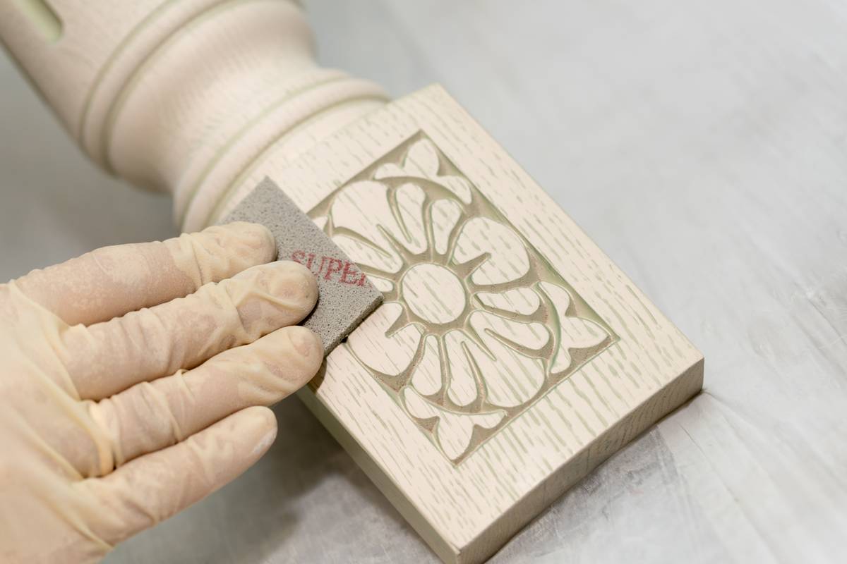 Деревянные элементы готовят к покраске, шлифуя вручную